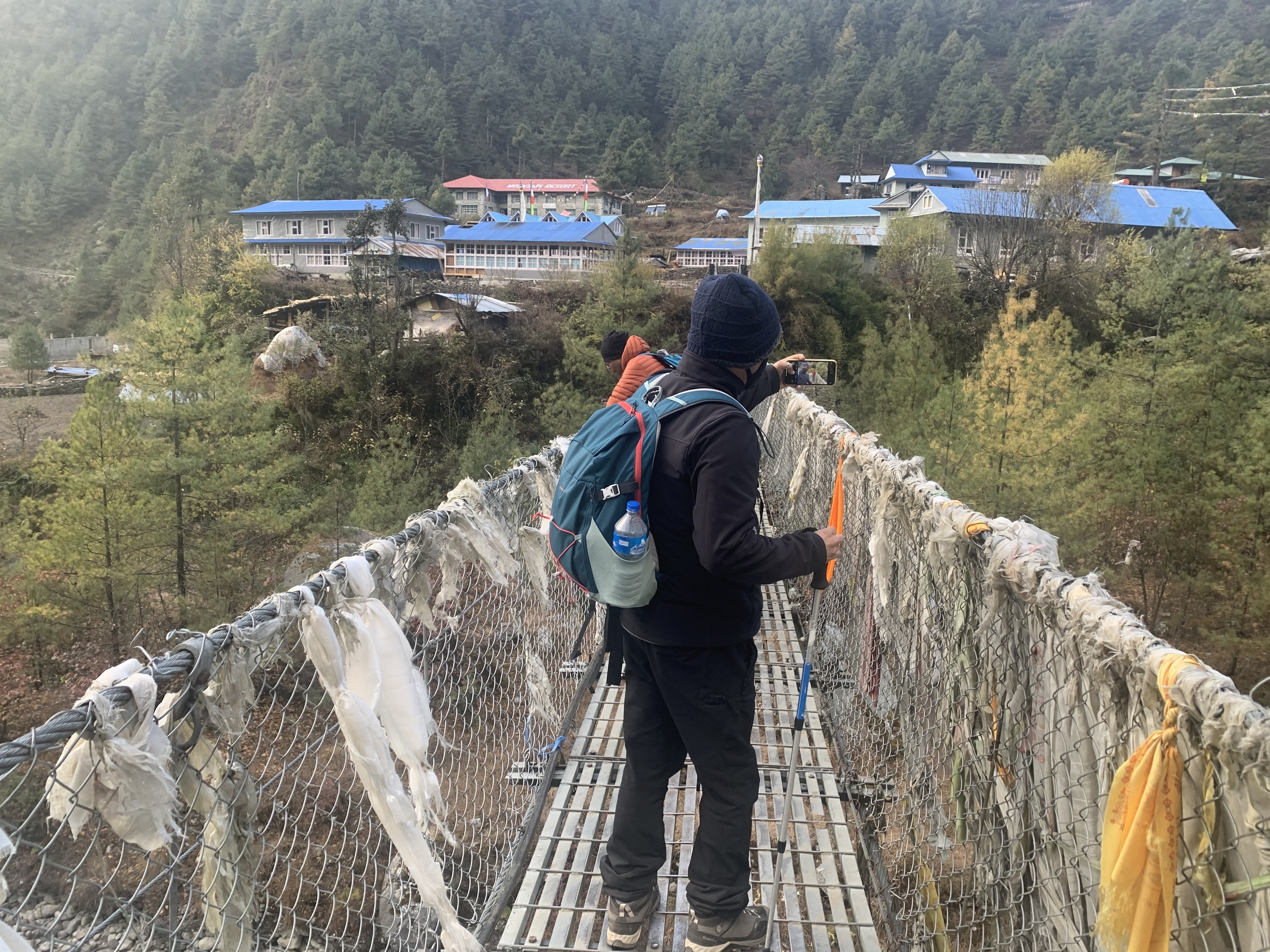 There was a bridge visible high up that we were supposed to cross. Once we reached there we realised the tough part was yet to begin. Known as the Hillary Bridge, this is the beginning of steps that take almost three hours of climbing to reach the foot of Namchi.