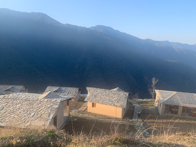 The Goat Village is one its kind in this area. Luxurious cottages were spaced around a hilltop. Well marked paths, a high hill in front that we later came to know was the Nagtibba hills and a deep valley on the other side. We were amazed how we got this place at the price we negotiated. Actually the resort had opened after a gap of three months because of the 3rd covid wave and it was a weekday. We were plain lucky.